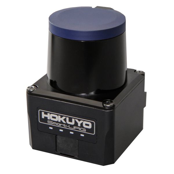 The Hokuyo UTM-30LX is a scanning laser range finder with an extended sensing range out to 30 meters. Interface to the sensor is through USB 2.0 with an additional synchronous data line to indicate a full sweep. Scanning rate is 25 milliseconds across a 270° range. A 12 V power source is required.